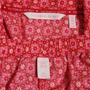 Victoria's Secret 2 Piece Pajama Set Women's Large Red Pink White Floral Cotton