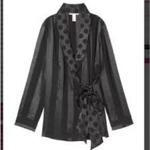 Victoria's Secret, 2-Piece Matching Black Satin Pajama & Wrap-Around Robe in embossed Circle’s & Stripes, Elastic Waist Pant, WEIGHTED PANT BOTTOMS, w/satin circles, Absolutely Gorgeous,Condition, Size Medium
