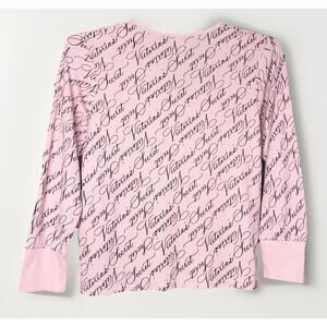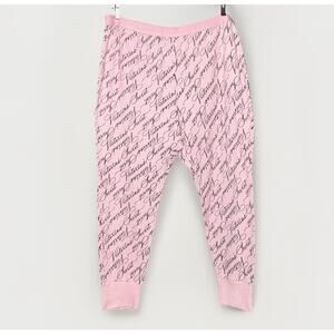 Victorias Secret 2XL Baby Pink Thermal Pajama Set Top Pants Waffle Cursive Print
