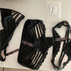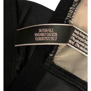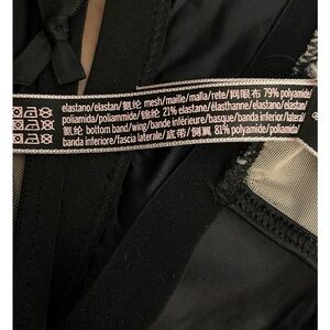 - Bra , Unpadded with underwire and nude mesh side slits.