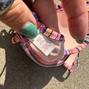 Victoria’s Secret 32C The Fabulous pink striped bikini top halter tie back tie