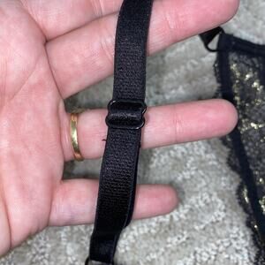 The Victoria's Secret 32C bra is a stylish and supportive push-up bra designed for women. It features a solid black color with a lace overlay and racerback design for a unique look. With underwired support and adjustable straps, this bra offers comfort and style. Made from a blend of metallic, polyamide, and elastane, it provides a full coverage with padded cups for a natural shape. The front closure and hook-and-eye design make it easy to put on and take off, perfect for everyday wear.