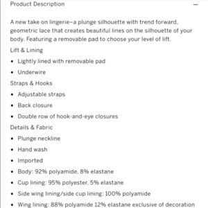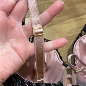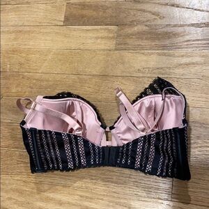 Sexy black lace over pink low plunge bra. Adjustable straps, underwire. Runs closer to a 34D, I’ve never been a 32.