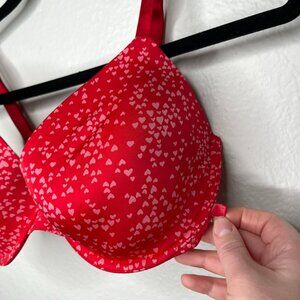 Victorias Secret 32DDD Red & Pink Hearts Underwire Lined Demi Bra