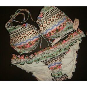 For sale is a BEAUTIFUL NWT Victoria's Secret BEACH SET,includes:1)34A top2-3) 2 XS RUFFLED bottoms