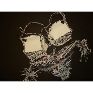 Victoria's Secret 34A BIKINI XS,S Black white geometric Bead Reversible GORGEOUS