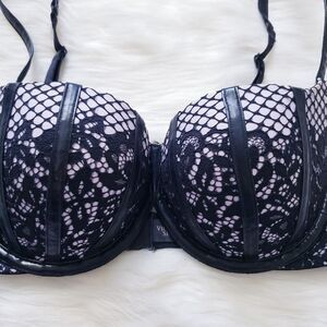 Victoria's Secret Vey Sexy lilac and black lace faux leather corset bra