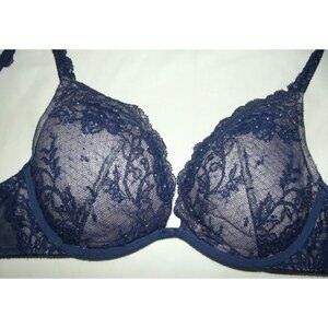 Victoria's Secret 34C Blue Lace Rhinestone Push Up Lace Bra padded crisscross