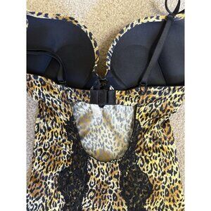 The Victoria's Secret Bombshell Miraculous Plunge Lingerie Top Teddy in 34C size is a stylish and supportive bra top perfect for casual occasions. With a unique animal print pattern and padded cups, this lingerie top from the Bombshell collection by Victoria's Secret is designed for comfort and fashion. The normal strap and hook & eye closure make it easy to wear, while the underwire support enhances the bust. Ideal for women looking for a vintage-inspired piece with modern features like adjustable straps, this lingerie top in a multicolor design is a must-have addition to any wardrobe. Vintage. No longer sold in stores.