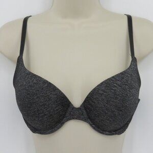 Victorias Secret 34C Padded Perfect Coverage Bra Heather Gray Black Underwire