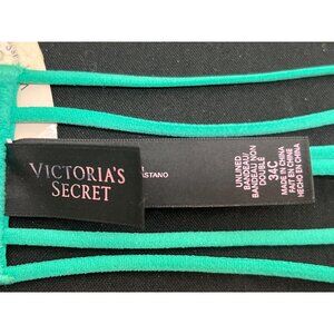 This Victoria's Secret bandeau bra features an unlined design, offering lightweight support and comfort. Its vibrant green color and strappy back enhance style, while the blend of polyester and elastane ensures a snug fit. Designed for versatility, this piece can be worn seamlessly under various outfits.