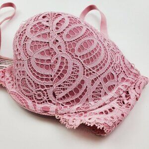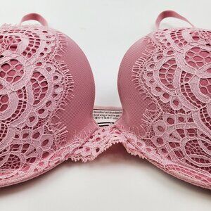 Victoria's Secret 34D Bra Dream Angels Push Up Lace Underwire Lingerie Rose Pink