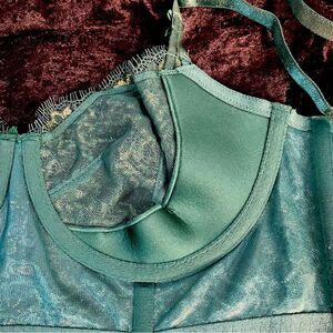 Victoria’s Secret 34D Bra NWT Dream Angels VS Push up without padding Emerald Green Navy & Gold
