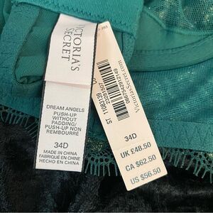 Victoria’s Secret 34D Bra NWT Dream Angels VS Push up w/out padding Emerald Gold