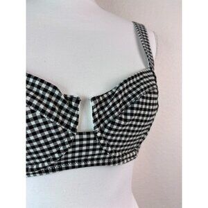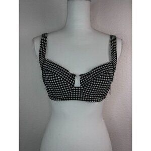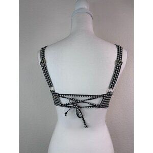 Victoria's Secret brand women's size 34D black and white checked bikini top. Brand new with tags. Unlined underwire cups. Adjustable straps and a lace up back.