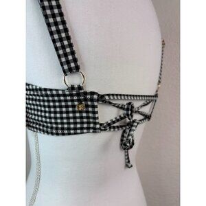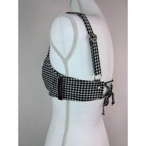 Victoria's Secret 34D black white checked underwire lace up back bikini top NWT