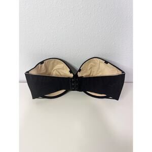 Victoria's Secret Strapless Multiway Bra in classic black, size 34DD. This versatile bra provides excellent support and shape, perfect for a variety of outfits. It features a beige interior and a secure hook-and-eye closure. The multiway design allows for different strap configurations, though this listing is for the strapless version.