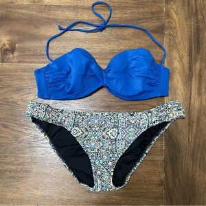 Victoria’s Secret 36B Large Blue and Paisley Print Bikini Twist Front Rutched