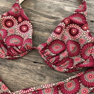 Victorias Secret 36B Small Two Piece Bikini Set Underwire Top Burgundy Mandala