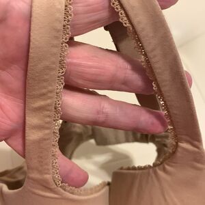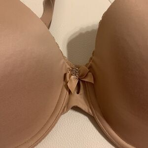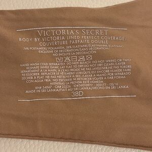 AS IS Victoria's Secret Size 38D Body by Victoria lined perfect coverage with underwire. Nude color. Interchangeable to Razorback. EUC Smoke free & Pet free home. See ALL photos for complete description/details. SOLD AS IS (one hook missing-see photo)
