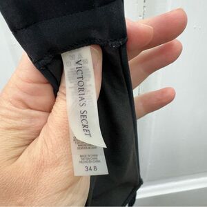 Victoria's Secret 4 piece mix and match swimsuit set black and leopard print. women's large, 34B and 36C. bottoms are a large. black top is a 34B halter tie top and adjustable back molded cup push up. leopard top with black is a 36C halter tie top and adjustable back molded cup push up. The other leopard print is hlater tie back with removable straps so can go strapless with tie back for maximum adjustability molded cup with additional removable pads (included)