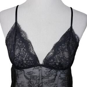Women's Victoria's Secret Slip Dress Chemise Size Medium Black Lace Up Sheer