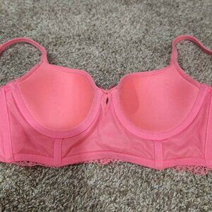 Pink Victoria's Secret underwire bra. Underwire with pink lace. No rips, no tears, lace intact on bra. (Size is 32 C) Material is super soft inside and outside