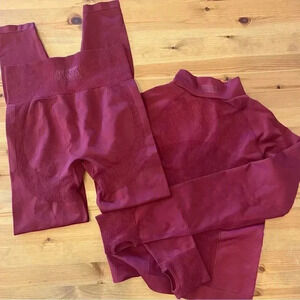 Victoria’s Secret Pink Active Everday Seamless Leggings & Cropped Jacket Set in Color Desire Maroon Red