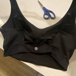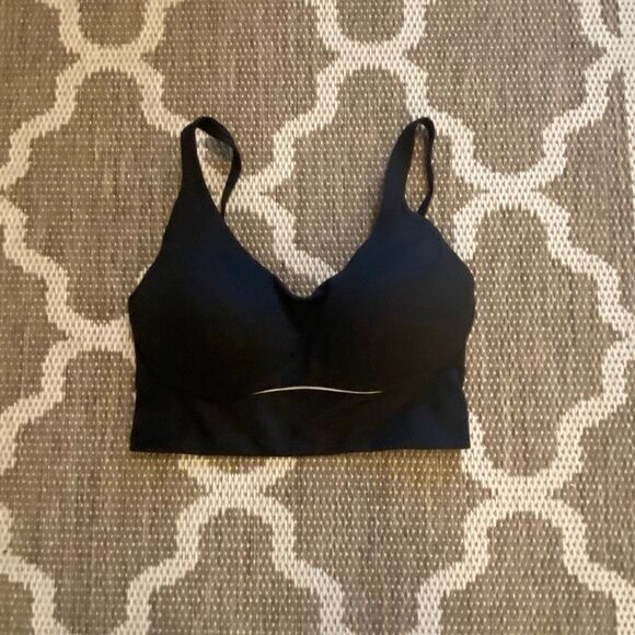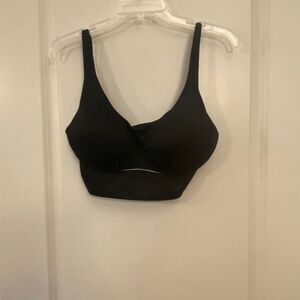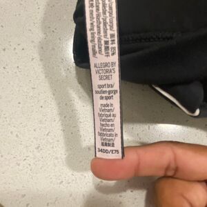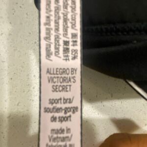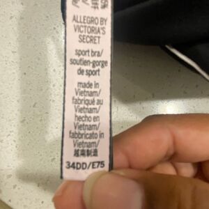 Victoria’s Secret Allegro sports bra, size 34DD the color is black with a white trim on the front. See pictures for more details strapping in the back super soft bra in good preowned condition. Normal wear and tear. See pictures for more details.