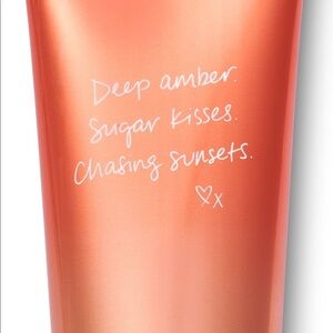Victoria’s Secret Amber Romance Fragrance Lotion. 8 fl oz. 24-Hour Moisture is perfect for hands and body. Deep amber. Sugar kisses. Chasing sunsets.