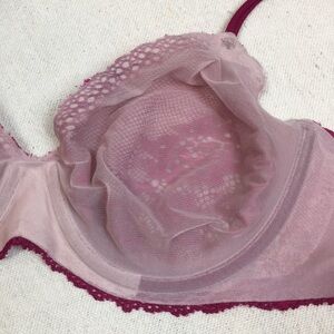 Pink lace bra- underwire Demi cups - adjustable straps- size 36B - gently Worn, shows some wear (light overall pilling)