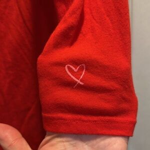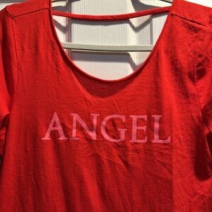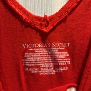Gently worn Victoria’s Secret Angel Red Valentine’s Day Sleep T-Shirt Nightgown women’s size S. Lightweight cotton/polyester t-shirt material, scoop neckline, long sleeves, v-back with strap across shoulders, hits mid thigh, heart logo on bottom of sleeve. Some light pilling- still good condition. Offers accepted.