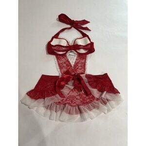 Victoria's Secret Apron Babydoll Lingerie in Red White