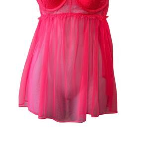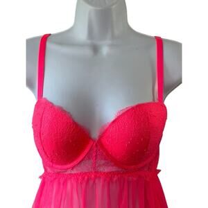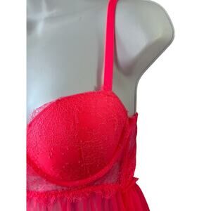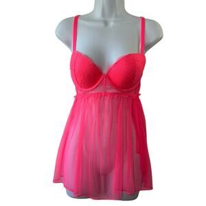 Victoria's Secret BRIGHT HOT PINK Lace Padded Pushup Bra Babydoll Negligee