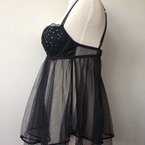 -item name: Victoria's Secret Babydoll Bridal Black Mesh Net Tutu Crystal Bra Top Sz 34C