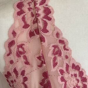 Victoria's Secret Babydoll Night Dress Women's L Pink Deep V Mesh Floral Lace