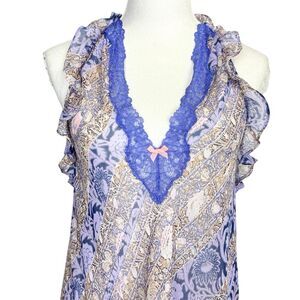 Victoria’s Secret Babydoll Slip Maxi Dress Medium Purple Lace Sheer High Low Hem
