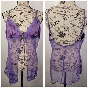 Victorias Secret Babydoll Top Large Sheer V Neck Open Front Purple VTG 90's Y2K