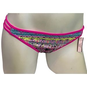 Victoria's Secret Bali Embroidery Pink Trim The Strappy Cheeky Swim Bottom XS