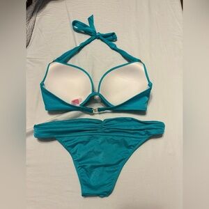 Dive into elegance with Victoria's Secret's stunning teal/blue bikini. The top features push up molded cups with underwire support for a flattering fit.