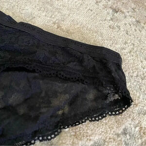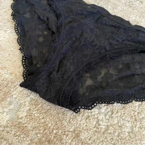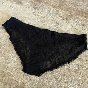 Victoria’s Secret Bikini Black Lace Panties Sheer Logo Waistband: Medium