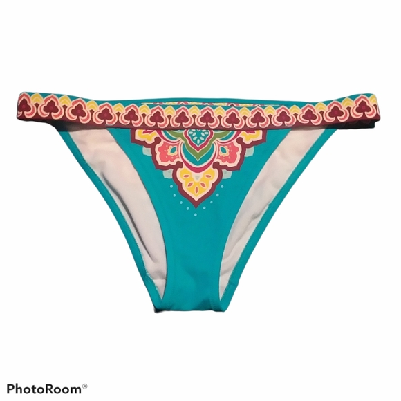 Victoria’s Secret Moroccan boho bikini bottoms in excellent condition. Vibrant turquoise with colorful paisley pattern.