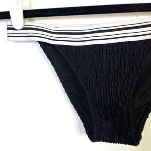 Victoria's Secret Bikini Bottoms Crinkle Crepe Black with White Black Strap XS