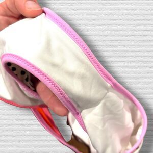 VS swim, Victorias Secret bikini, triangle top, cheeky bottom, dalmatian print, neon trim bikini, two-piece swimsuit, strappy bikini, small swim set, VSX swim, polka dot bikini