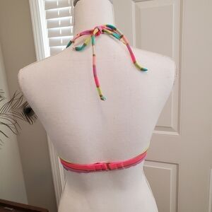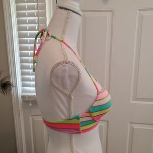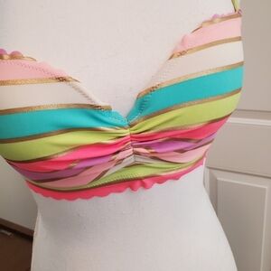 Victoria's Secret Bikini Top 32C Colorful Stripes Ruched Tie Neck Adjustable