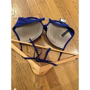 Victorias Secret Bikini Top 34 D Unforgettable Demi Halter Solid Blue Padded 3QG
