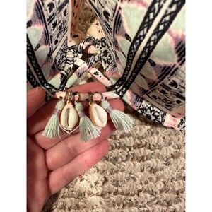 Victoria's Secret Bikini Top 34dd strapless Bandeau Tassel Shell Geo Aztec