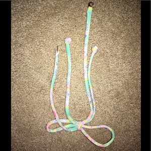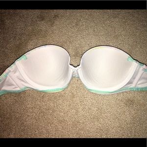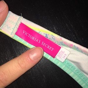Super cute Victoria’s Secret bikini top. Size 34B. Pale floral design with aqua and pink. Attachable straps come with it. Lightly worn but in almost perfect condition!!!