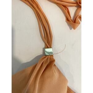 Victoria's Secret Bikini Top PEACH Long Fringe Halter Tie The Gorgeous 34D