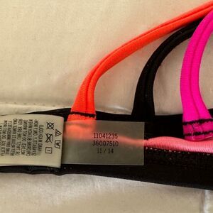 tags: victorias secret pink swimsuit top bikini vs padded top exercise bra sports size s size small size S black strappy neon straps pink magenta orange straps beach beachy pool swim swimming party vacation vacay resort cruise trip travel neon modcloth madewell stylist fave blogger fav blogger favorite skater surfer coastal grandmother island mexico hawaii hawaiian